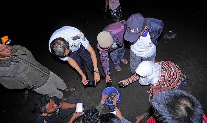 Pemindahan telur penyu ke tempat penetasan semi alami di Pantai Boom.