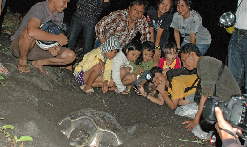 Pemindahan telur penyu ke tempat penetasan semi alami di Pantai Boom.