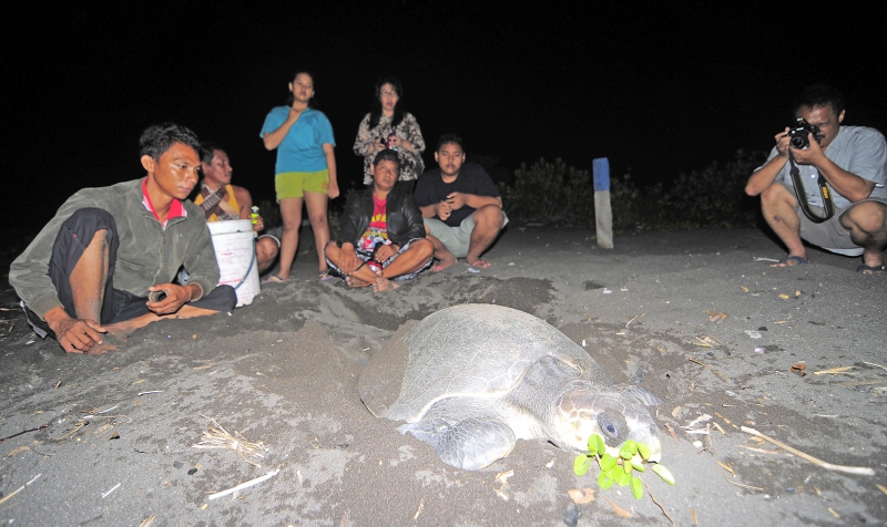Penyu Bertelur di Pantai Boom