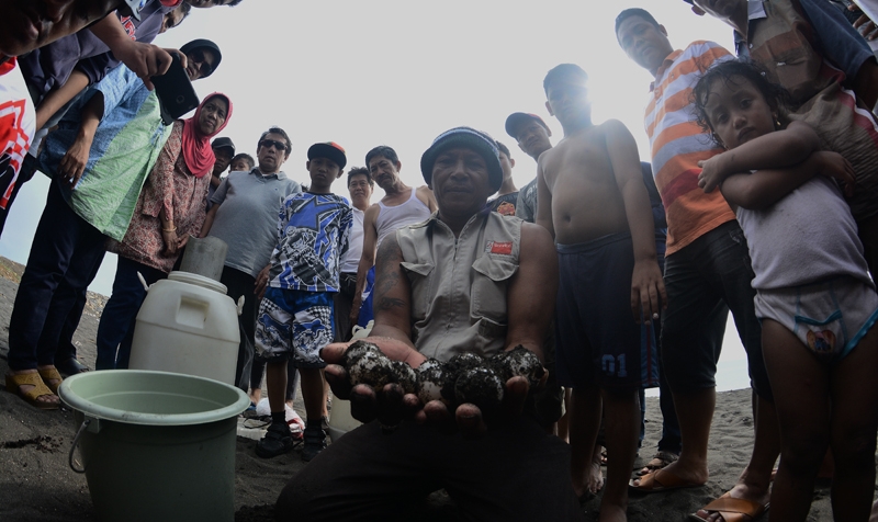 Penyu Bertelur di Pantai Boom