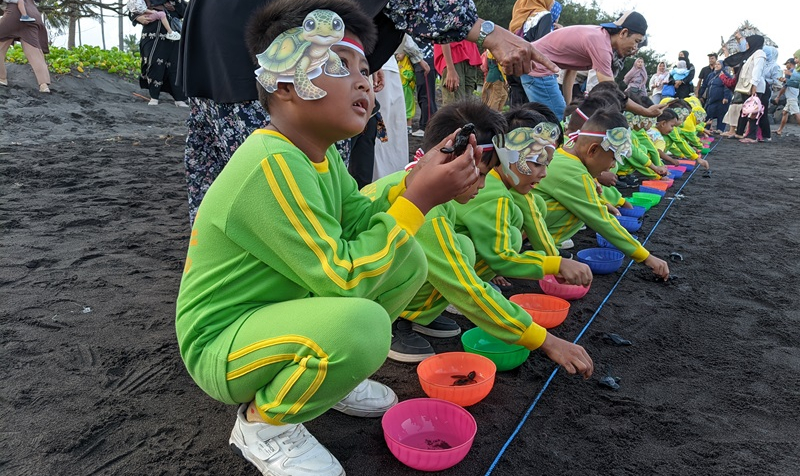 Pelepasliaran Tukik Bersama Siswa Siswi Aisyah 1 Banyuwangi