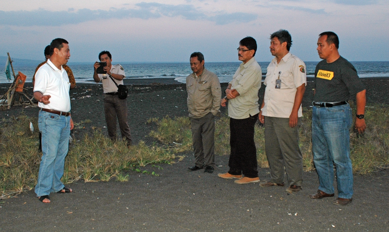 Pelepasliaran tukik bersama Kepala Balai Besar KSDA Jatim beserta Kepala Bidang Wilayah III Jember dan Kepala Seksi Konservasi Wilayah V Bwi.
