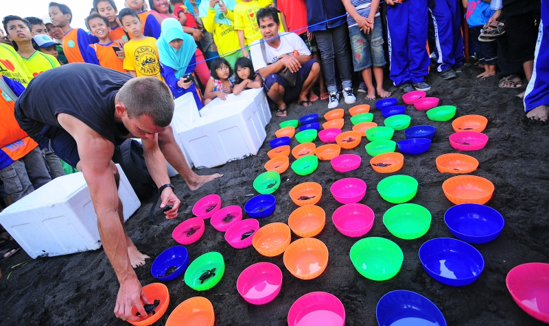 Pelepasliaran Tukik bersama murid MTsN Banyuwangi