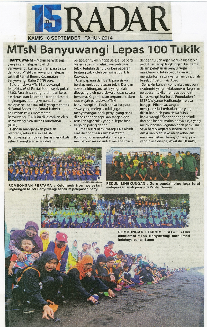Pelepasliaran tukik bersama MTsN Banyuwangi.