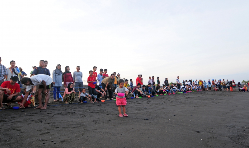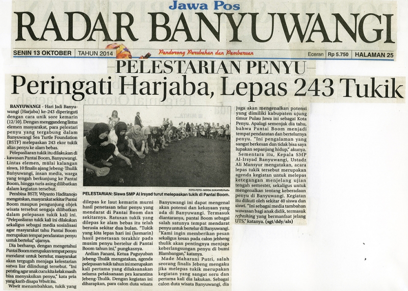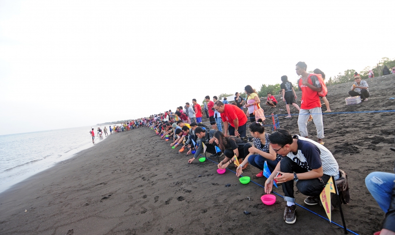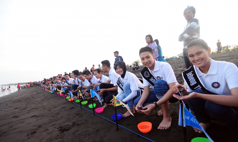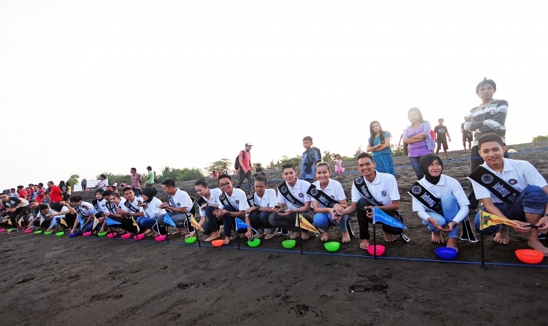 Pelepasliaran tukik bersama Peringati Harjaba ke 243 oleh 10 Finalis Jebeng Thulik, Insan Media dan warga Banyuwangi.