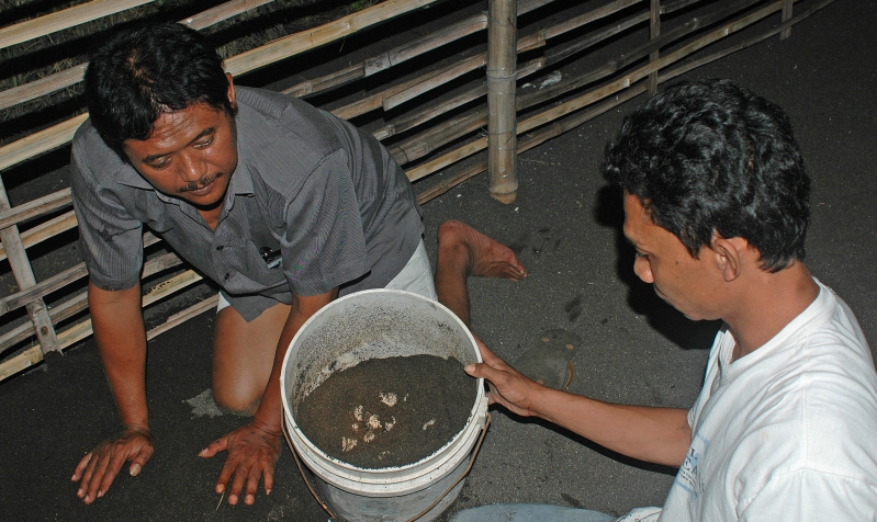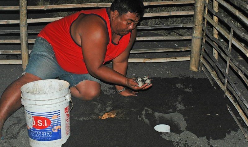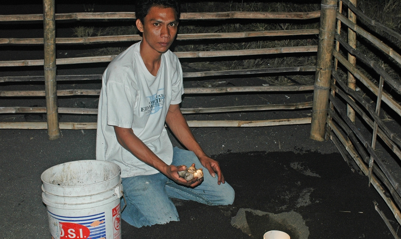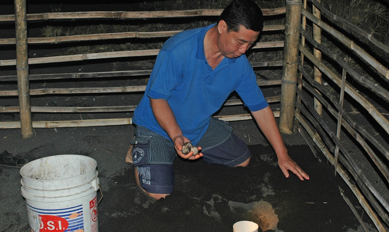 Pemindahan telur penyu ke tempat penetasan semi alami di Pantai Boom.