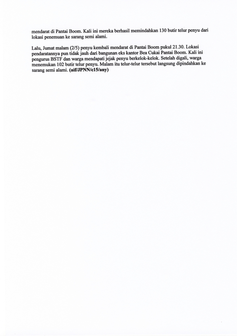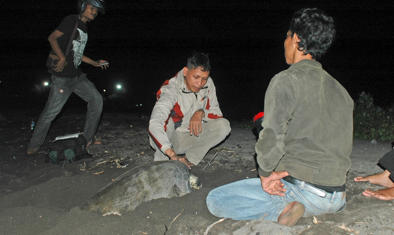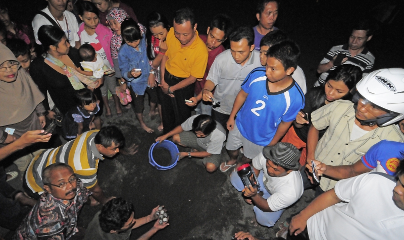 Penyu Bertelur di Pantai Boom