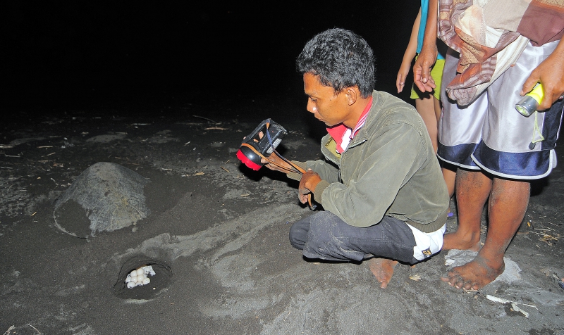 Pemindahan telur penyu ke tempat penetasan semi alami di Pantai Boom.
