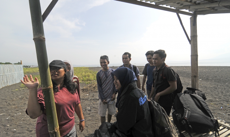 Kunjungan UNIBRAW ke tempat tempat penetasan semi alami BSTF untuk melakukan PKL terkait penyu di Pantai Boom.