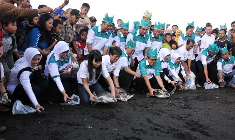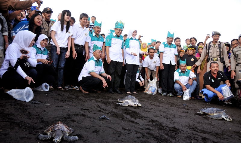 Pelepasan kesembilan di Pantai Boom Banyuwangi di acara Sunrise of Java dalam rangka menyambut Tahun Baru 2013 bersama Bupati Banyuwangi dan staf diliput oleh SCTV.