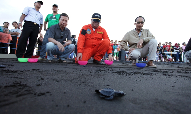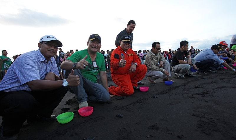 Pelepasliaran Tukik Bersama calon Penerbang Banyuwangi hadir juga direktur jenderal Pengembangan SDM pada Kementerian Perhubungan.