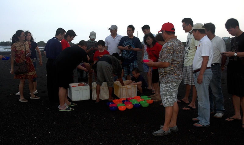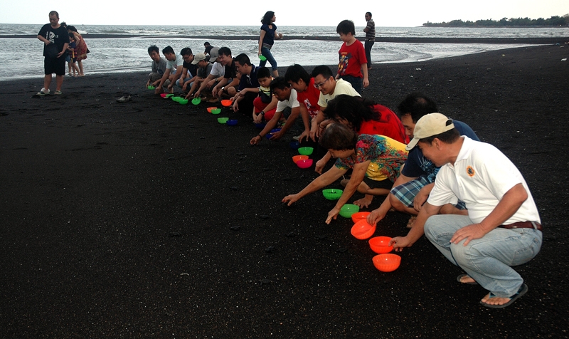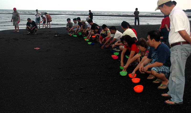 Pelepasliaran 100 Tukik dengan jenis penyu lekang bersama Umat TITD Tik Liong Tian Rogojampi di pantai Boom Banyuwangi.