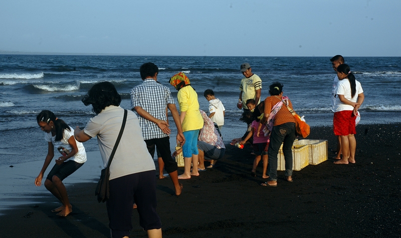 Pelepasliaran 150 Tukik dengan jenis penyu lekang bersama Umat Vihara Samatha Dhika Dharma di pantai Boom Banyuwangi.
