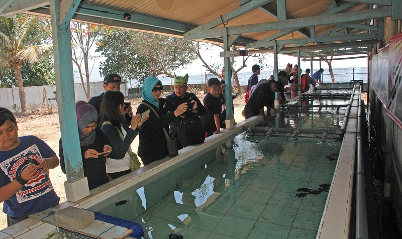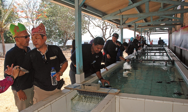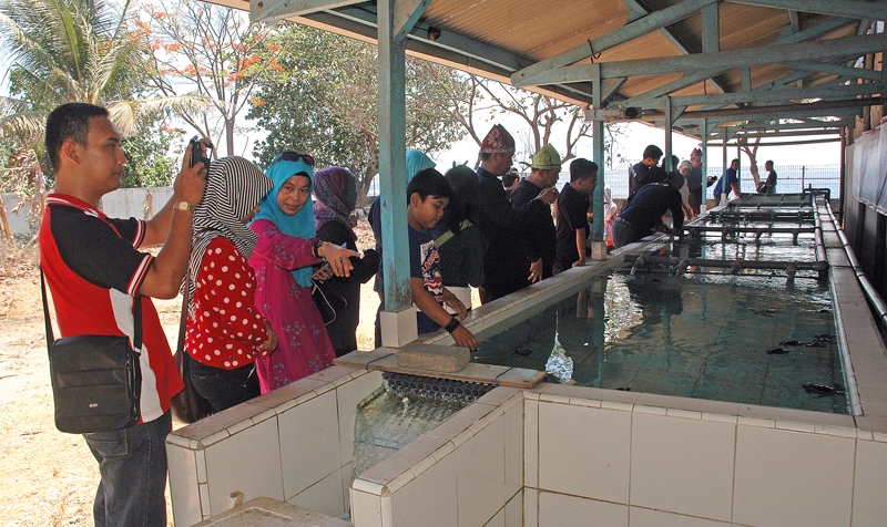 Rombongan HAPPI mengunjungi Farm Banyuwangi Sea Turtle Foundation untuk melihat pemeliharaan tukik.