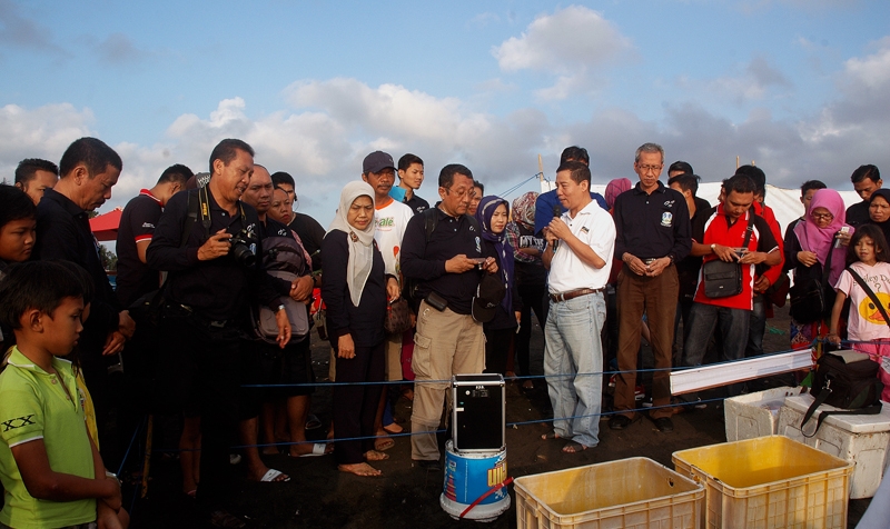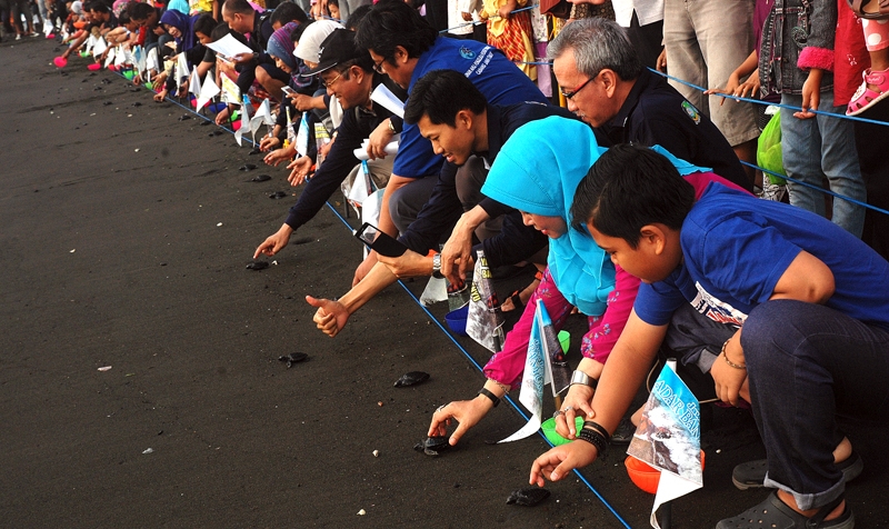Pelepasliaran 40 Tukik dengan jenis penyu lekang bersama rombongan Himpinan Ahli Pesisir Pantai Indonesia di pantai Boom Banyuwangi.