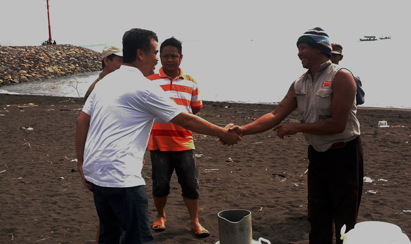 Menemukan penyu lekang bertelur di Pantai Boom sebanyak 113 telur di saksikan Bambang Wuryanto mantan Adm Banyuwangi utara dan keluarga.