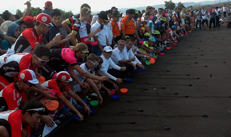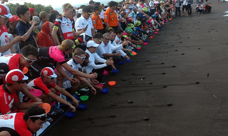 Pelepasliaran Tukik pada acara Tour de Banyuwangi Ijen 2016