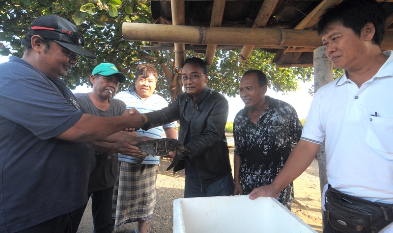 Penyelamatan Penyu Sisik di Pantai Boom.
