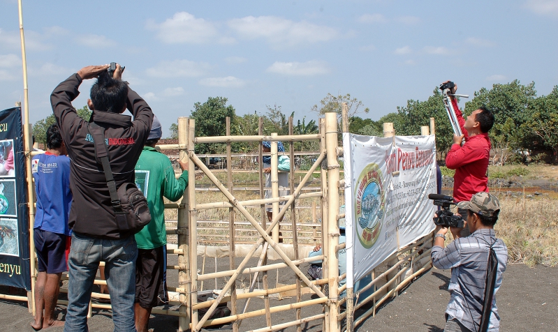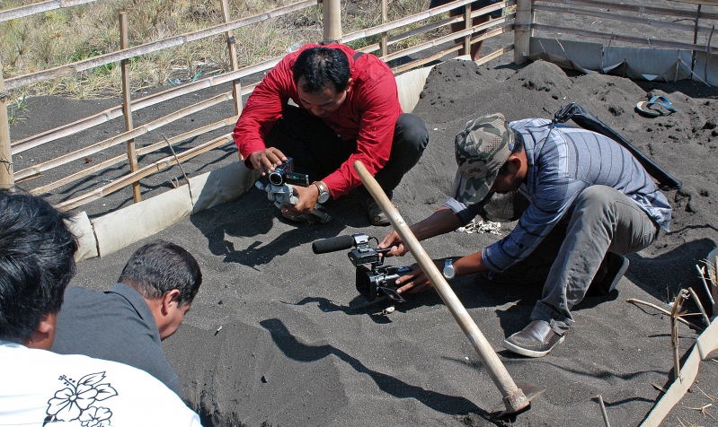 Kunjungan awak media untuk meliput tempat penetasan telur penyu di Pantai Boom.