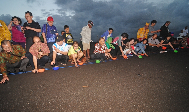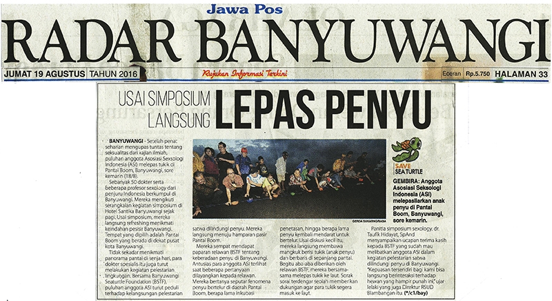 Pelepasliaran 50 tukik dengan jenis penyu lekang bersama dokter ASI di pantai Boom Banyuwangi.