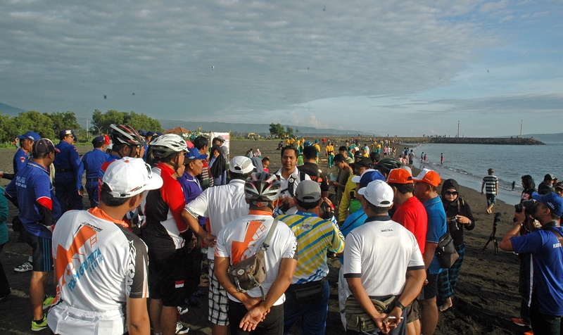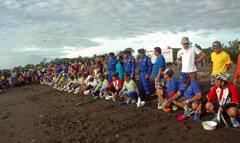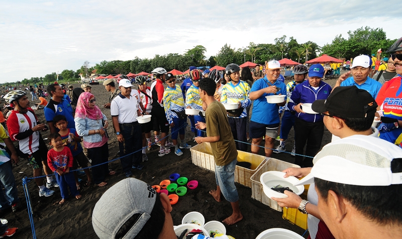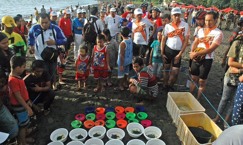 Pelepasliaran 50 Tukik dengan jenis penyu lekang bersama PDAM di pantai Boom Banyuwangi.