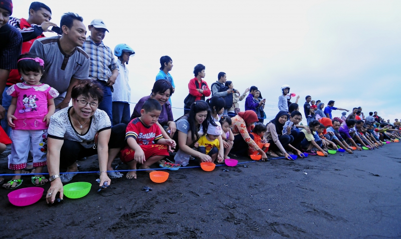 Pelepasliaran tukik bersama GM PT. Pelabuhan Indonesia III Cabang Tanjung Wangi beserta staf dan keluarga.