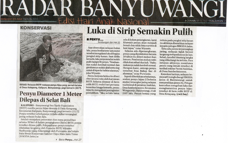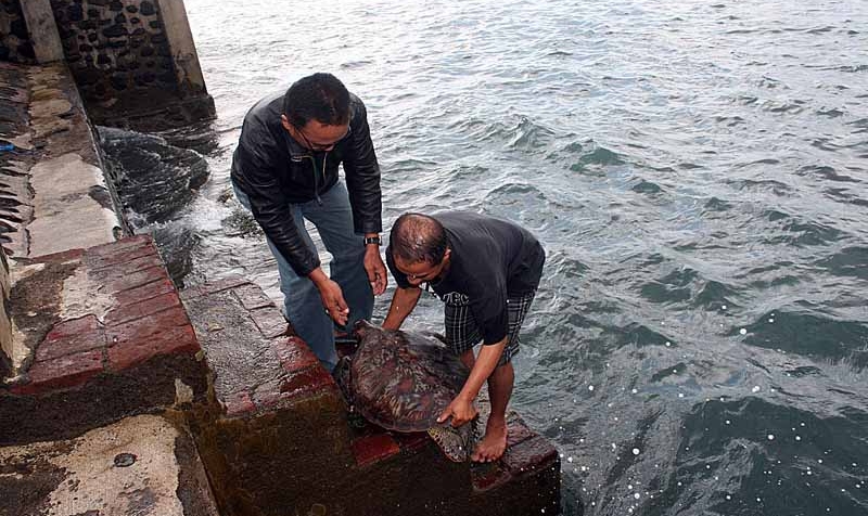 Penyu Berdiameter 1 Meter Dilepas di Selat Bali