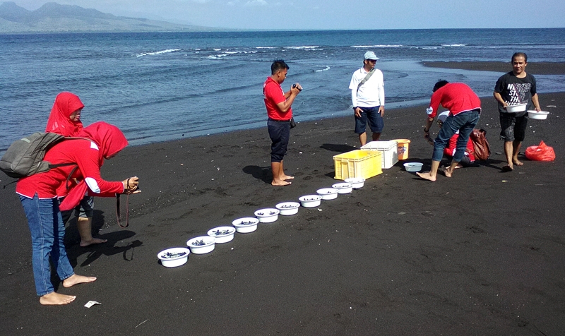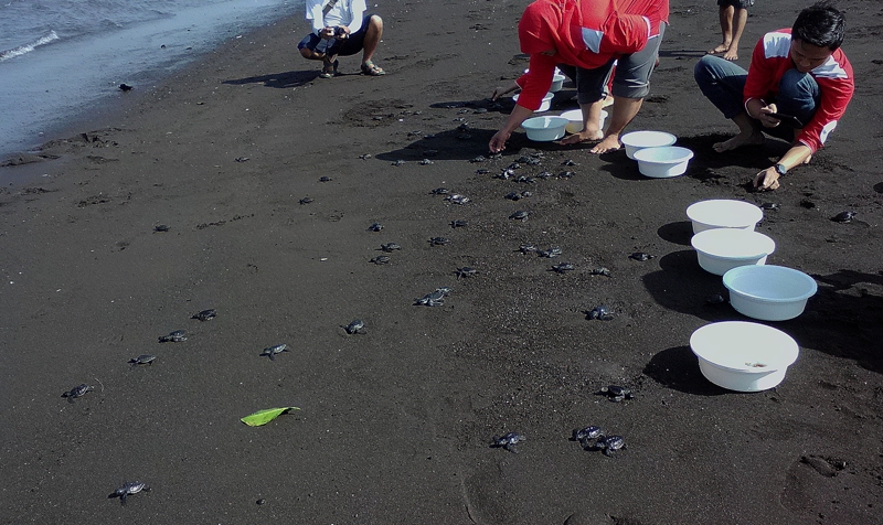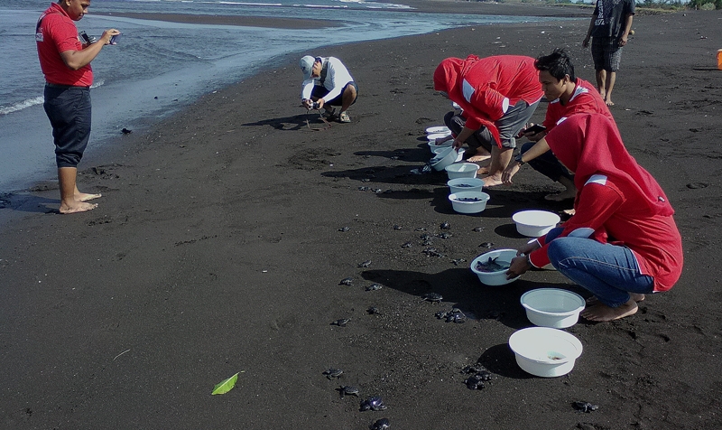 Pelepasliaran 50 Tukik Bersama Indofood dengan jenis penyu lekang bersama Indofood di pantai Boom Banyuwangi.