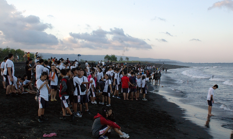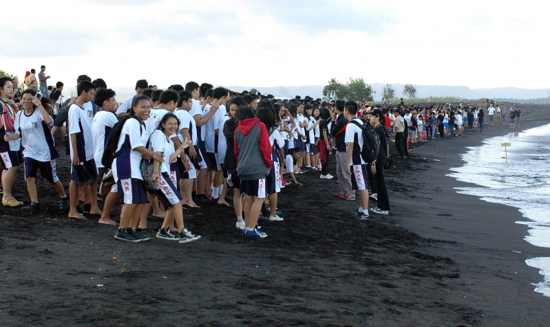 Pelepasliaran tukik bersama SMPK Santo Yusuf dan SMAK Hikmah Mandala Bwi beserta Kasek dan guru.