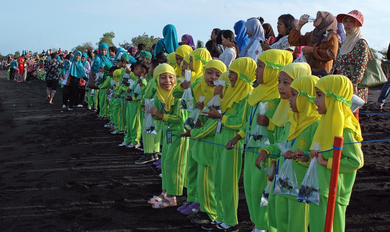 Pelepasliaran tukik bersama TK Aisiyah II Singotrunan
