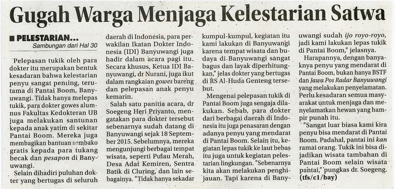 Pelestarian Penyu Dipuji Alumnus Universitas Brawijaya Malang