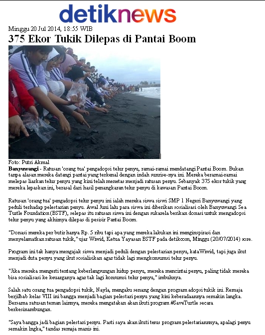 375 Ekor Tukik Dilepas Di Pantai Boom