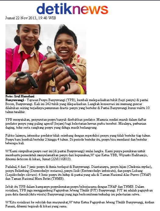 Sebanyak 242 Tukik Dilepasliarkan Di Pantai Boom Banyuwangi