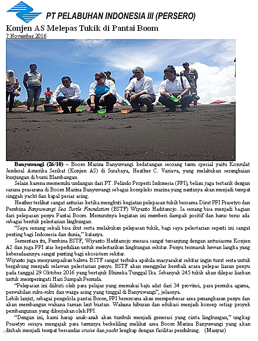 Konjen AS Melepas Tukik Di Pantai Boom