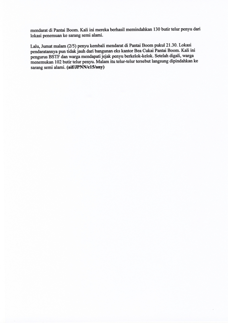 Memindahkan Telur Penyu ke Sarang Penetasan Semi Alami